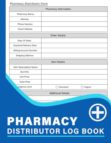 Pharmacy Distributor Log Book: Pharmacy Orders Management Book | Medication Distribution Record |110 Pages
