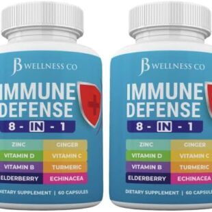 Immune Support 8 in 1 Capsules – Zinc Supplement, Vitamin D3 5000 IU, Vitamin C 1000MG and Elderberry – Immune Booster Ginger Root, and Turmeric – [2-Pack]
