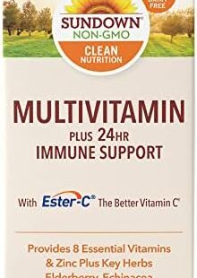 Sundown Multivitamin Plus 24Hr Immune Support, With 8 Essential Vitamins and Zinc, 60 Softgels