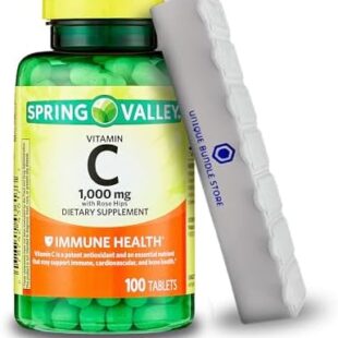 Spring Valley, Vitamin C with Rose HIPS 1000MG, 100 Count Tablets Dietary Supplement, Vitamin C 1000MG, 7 Day Pill Organizer Included (Pack of 1)