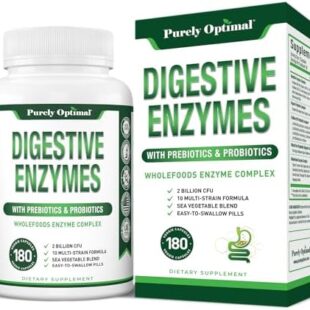 Purely Optimal Premium Digestive Enzymes Plus Prebiotics & Probiotics – for Better Digestion, Immune Support, & Nutrient Absorption – Gas, Constipation & Bloating Relief – 180 Capsules