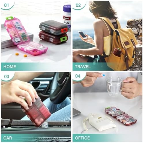 ★Safe Design – The medicine box adopts a double safety buckle design, with an external safety buckle and each compartment inner secure buckle. They are easy to open and close, and the inner lids can be removed as a whole for filling pills or cleaning. The design prevents pills from falling or getting dusted in during daily use. A good home or travel essentials of meds organizer.