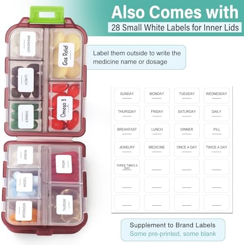 ★Product Includes – 1 pack pink brown pill organizer box (10 Grid) and 1 drawstring velvet pouch and 28 pcs labels, some are pre-printed and some are blank. The labels match the inner cover’s size to help you mark the date, dosage(such as: daily, 2 times a day, 3 times a day), medication name, and so on.