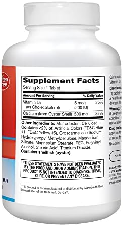 500mg calcium and 200 IU vitamin D3 in each easy to swallow caplet