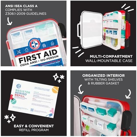 Meets or exceeds OSHA guidelines for 100 people. Ideal for most businesses and perfect for family Use at home.