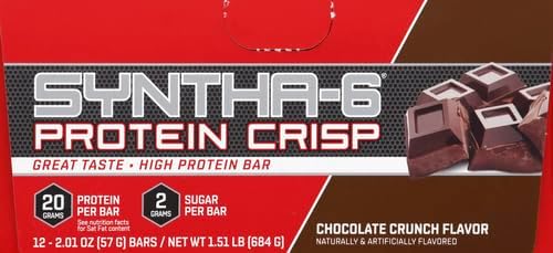 BSN Protein Bars – Protein Crisp Bar by Syntha-6, Whey Protein, 20g of Protein, Gluten Free, Low Sugar, Chocolate Crunch, 12 Count