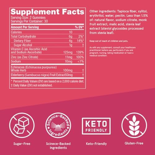 Contains one 60-count jar of Bulletproof Sugar-Free Raspberry Elderberry Immune Gummies