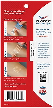 MEDICAL GRADE, FDA CLEARED CLOSURE: Developed for medical professionals for use in surgery, emergency room and urgent care centers, Clozex has been cleared for personal use as an over- the- counter wound closure device. Clinically proven in numerous clinical studies at top-tier hospitals