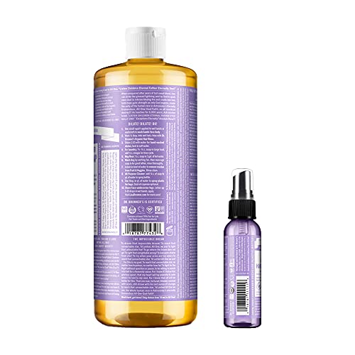 Dr. Bronner’s – Lavender Variety Pack – (1) 32 oz Pure-Castile Liquid Soap & (1) 2 oz Organic Hand Sanitizer Spray – Made with Organic Ingredients, Non-GMO, Vegan | 2-Pack
