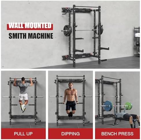 Heavy duty: Built with 60x60mm 16 gauge steel uprights and textured powder coat paint for a secure grip, it can handle up to 1000 lbs of weight. Folding squat & power rack wall mounted are easy to put on either wood stud or concrete wall.