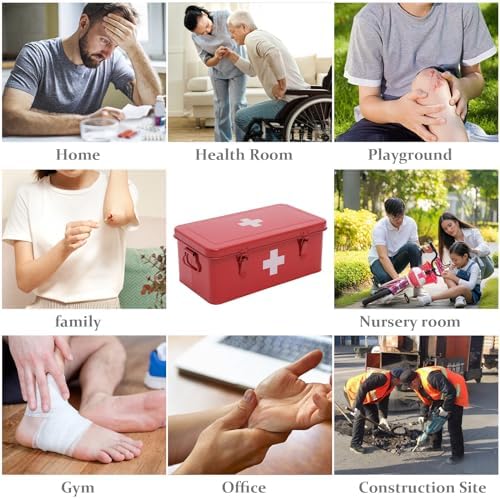 【Large Capacity】The dimension of this well-sized first aid box is 12.9″ x 7″ x 5″ (LxWxH). This metal storage bin can hold the medicine essentials which meet your daily needs and helps you take better care of you and your families.