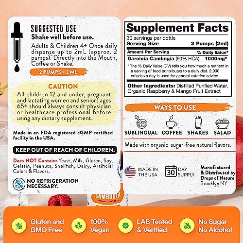 ✅ VEGAN-FRIENDLY, NON-GMO LIQUID – Drops Of Nature pure garcinia cambogia extract is gluten free and contains no harmful additives or sugars to better support your vegan or vegetarian diet plan and to increase your metabolism naturally.