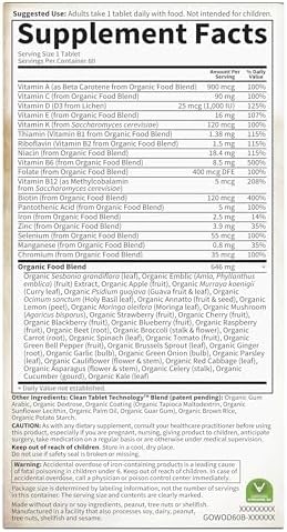 CERTIFIED ORGANIC MULTIVITAMIN: Organic vitamins and minerals are made from real foods—gently extracted using water and proudly third-party tested and certified Organic, Non-GMO, Gluten Free, Vegan & Kosher