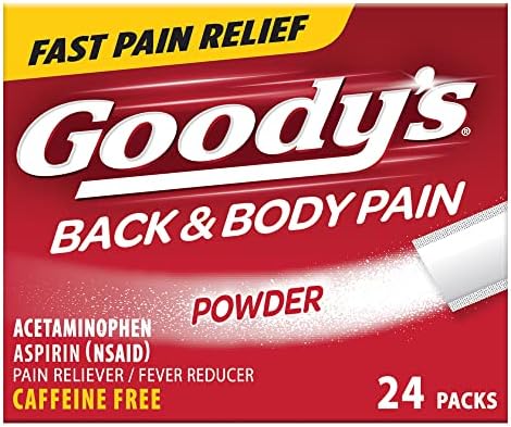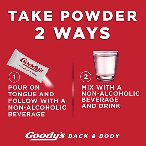 Contains 1 box of Goody’s Back and Body Pain Relief Powder, 24 stick powders; for use by adults and children 12 years and older