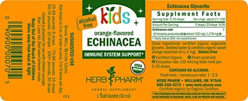 Herb Pharm Alcohol-Free Kids Echinacea Glycerite supports the healthy function of children’s immune systems. Herb Pharm prepares Kids Echinacea from certified organic Echinacea purpurea root and sweet orange essential oil for kid-friendly flavor. The Echinacea roots are grown on Herb Pharm’s own farm and are harvested and extracted at the peak of potency. Easy-to-follow dosing instructions based on body weight are included; simply add drops to a small amount of water or juice. The experts at Herb Pharm select only those herbs that time and experience have proven safe and effective for children. Herb Pharm Alcohol-Free Kids Echinacea Glycerite, like all Herb Pharm Kids’ herbs, is recommended by Aviva Romm, MD, an internationally-respected expert in botanical and integrative medicine for women and children.