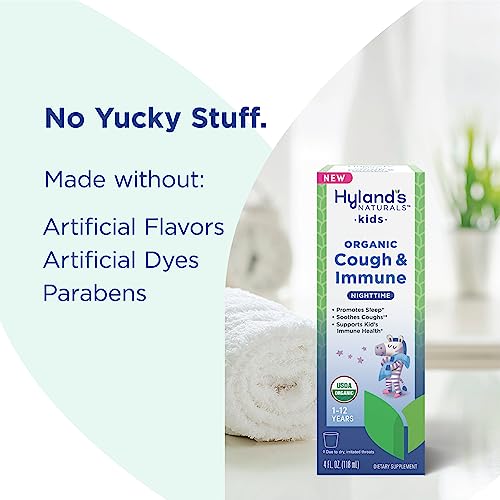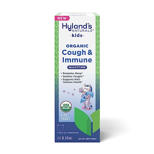 Hyland’s Naturals Kids Organic Cough & Immune with Agave, Elderberry & Pomegranate – Soothes Cough and Cold, & Supports Immunity – Nighttime – 4 Fl. Oz.