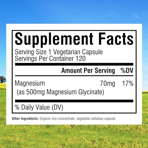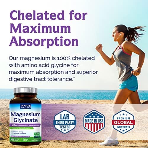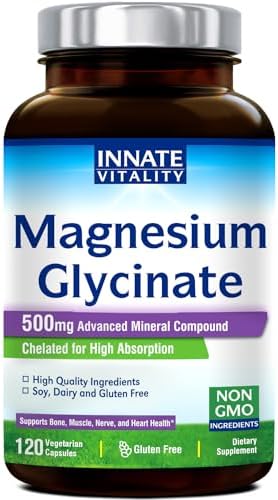 Innate Vitality Magnesium Glycinate 500mg, 70mg Elemental Magnesium per Cap, High Absorption, Non-GMO No Gluten, Nerve, Muscle, Bone, Heart Health, 120 Veggie Capsules