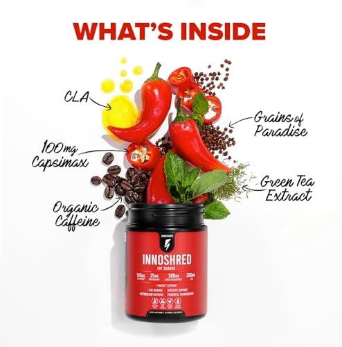 Inno Shred – Day Time Fat Burner | 100mg Capsimax, Grains of Paradise, Organic Caffeine, Green Tea Extract, Appetite Suppressant, Weight Loss Support (60 Veggie Capsules) | (with Stimulant)
