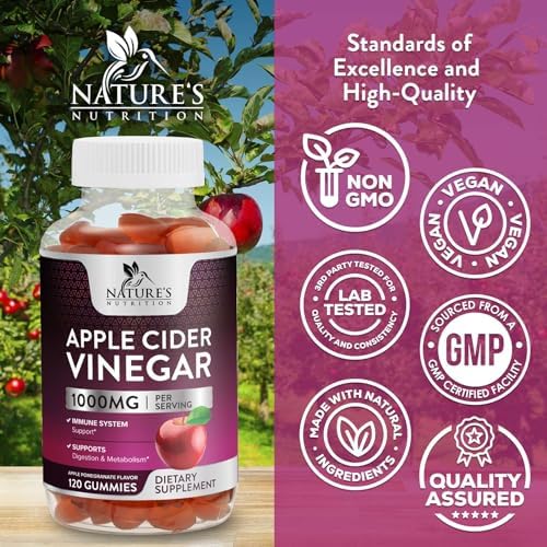 Nature’s Nutrition Apple Vinegar Gummy for Weight Loss 1000mg – Vegan Apple Cider Vinegar Gummies for Detox & Cleanse, ACV Supplement Pills, Vitamin B12, Beetroot & Pomegranate, Non-GMO – 120 Gummies