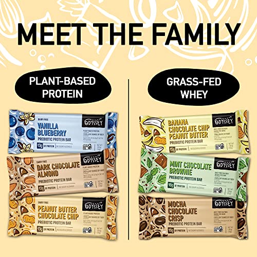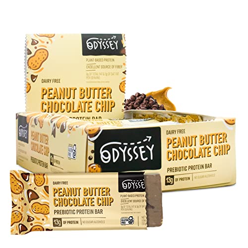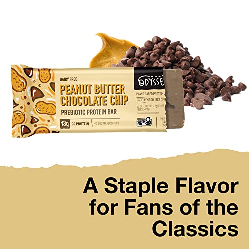 Odyssey Snacks, Peanut Butter Chocolate Chip Prebiotic Protein Bars, 12 Pack, 13g of Plant Protein, Healthy Gluten Free Protein Snacks, Fast Breakfast, Snack Food Replacement for Kids and Adults