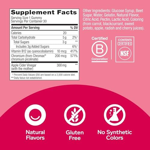 THE GOODS INSIDE: Clinically-studied dose of Chromium to support lean body mass and boost metabolism. Apple Cider Vinegar (with the “mother,” containing gut-friendly probiotics) to support digestive health and Vitamin B12 for energy*