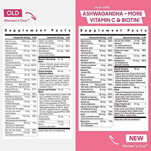 HEALTH-ORIENTED: Has ashwagandha, lutein, probiotics and more vitamin C and Biotin than previous Women’s One Multivitamin; it also has 100% or more of the daily value of 19 vitamins and minerals