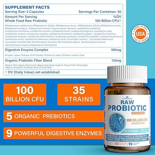 100 BILLION CFU 35 Strains probiotics 9 digestive enzymes 4 prebiotics