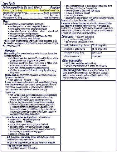 When a cold comes on strong, knock it out with Vicks DayQuil SEVERE Cold & Flu over-the-counter medicine. Just one dose starts working fast to relieve 9 of your worst cold and flu symptoms, to help take you from 9 to none. From the world’s #1 selling OTC cough and cold brand†, Vicks DayQuil SEVERE provides fast, powerful, maximum strength relief for your worst cold and flu symptoms. Vicks DayQuil SEVERE provides powerful, maximum strength 9-symptom relief to treat coughing, stuffy nose, minor body pain, chest congestion, sinus congestion, sinus pressure, sore throat, headache, and fever. Use when you need fast, non-drowsy daytime relief for your ugliest, roughest, toughest cold symptoms so you can get on with your day. Nothing works faster. Use to temporarily relieve common cold/flu symptoms, including to thin & loosen bothersome mucus. Vicks has been trusted for over 125 years to relieve your cold and flu symptoms. DayQuil is the #1 pharmacist recommended daytime cough, cold & flu brand* Active ingredients per 30 mL dose for adults are acetaminophen 650 mg (pain reliever/fever reducer), dextromethorphan HBr 20 mg (cough suppressant), guaifenesin 400 mg (expectorant/thins and loosens mucus), and phenylephrine HCI 10 mg (nasal decongestant). Store at room temperature; do not refrigerate. Take only as directed. Use only the dose cup provided. Do not exceed 4 doses per 24 hours. Adults and children 12 years and over take 30 mL every 4 hours. *2022 Pharmacy Times Survey of Pharmacists OTC Recommendations † Nicholas Hall’s global CHC sales database, DB20